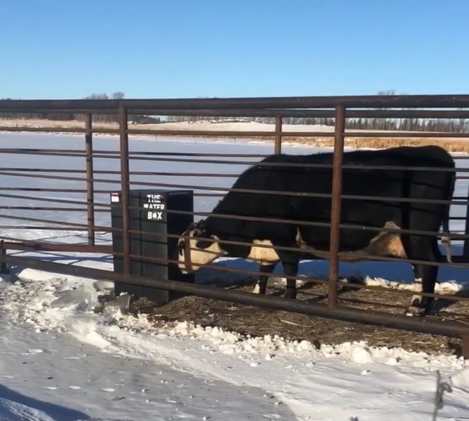 The Water Box inserts through the ice surface and uses geothermal energy from the water source along with our innovative design to keep the water open during the winter months. Livestock utilize the box' by lifting up the nose flipper then place their head into the receptacle to drink.